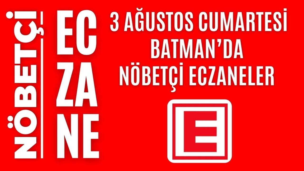 İşte Batman’da 3 Ağustos Cumartesi günü açık olacak olan tüm nöbetçi eczanelerin isimleri, adresleri ve iletişim bilgileri…