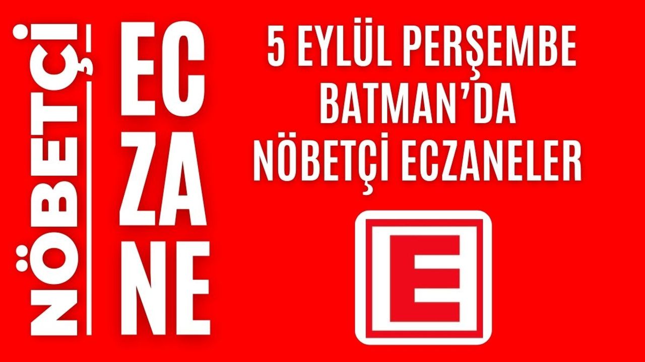 İşte Batman’da 5 Eylül Perşembe günü açık olacak olan tüm nöbetçi eczanelerin isimleri, adresleri ve iletişim bilgileri…