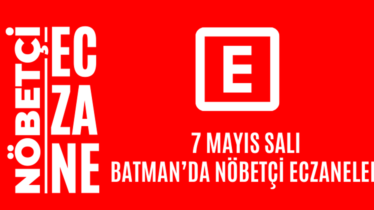 İşte Batman’da 7 Mayıs Salı günü açık olacak olan tüm nöbetçi eczanelerin isimleri, adresleri ve iletişim bilgileri…