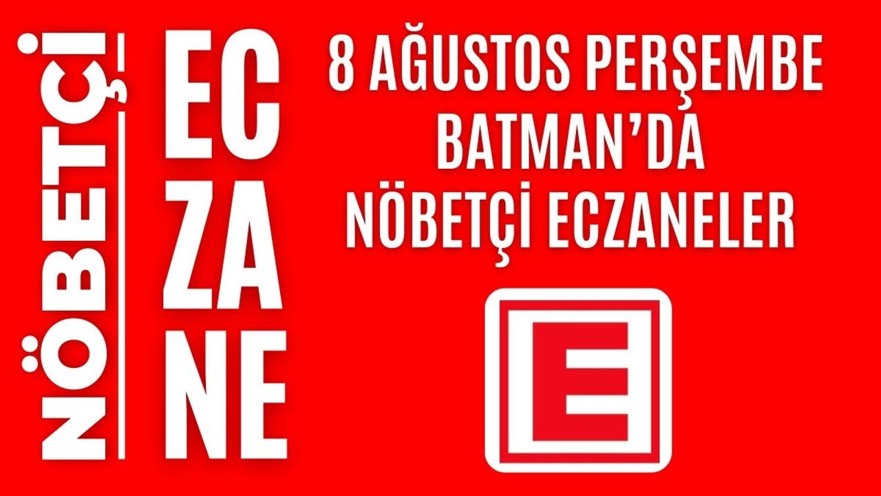 İşte Batman’da 8 Ağustos Perşembe günü açık olacak olan tüm nöbetçi eczanelerin isimleri, adresleri ve iletişim bilgileri…