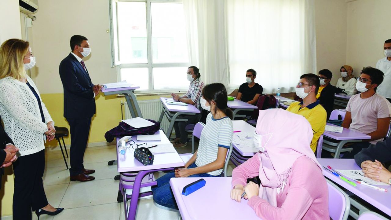 COVİD-19 salgını nedeniyle gerçekleştirilemeyen yüz yüze eğitimleri telafi etmek amacıyla, Fen Lisesi öğretmen ve yöneticileri tarafından, okulun 12. sınıf öğrencilerine yönelik gerçekleştirilen kursları ziyaret eden Vali, sınıfları tek tek dolaşarak verilen kurslar hakkında yetkililerden bilgi aldı.