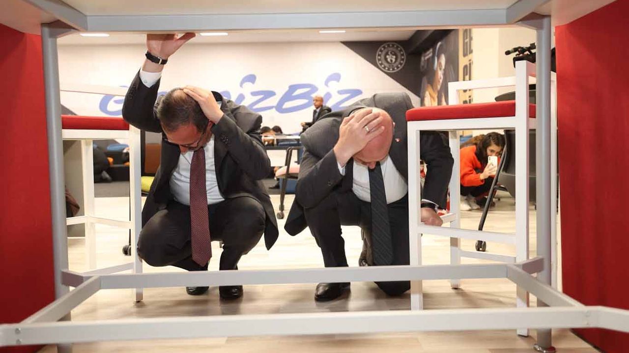durumlarda yapılması gerekenlere yönelik "Deprem Anı Çök-Kapan-Tutun ve