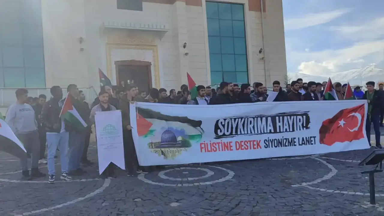 Iğdır Üniversitesi Suveren Kampüs Camii önünde bir araya gelen Iğdır Üniversitesi İlim ve Medeniyet Kulübü öğrencileri, Siyonist işgal rejiminin Filistin'e yönelik katliamlarını tel'in etti.