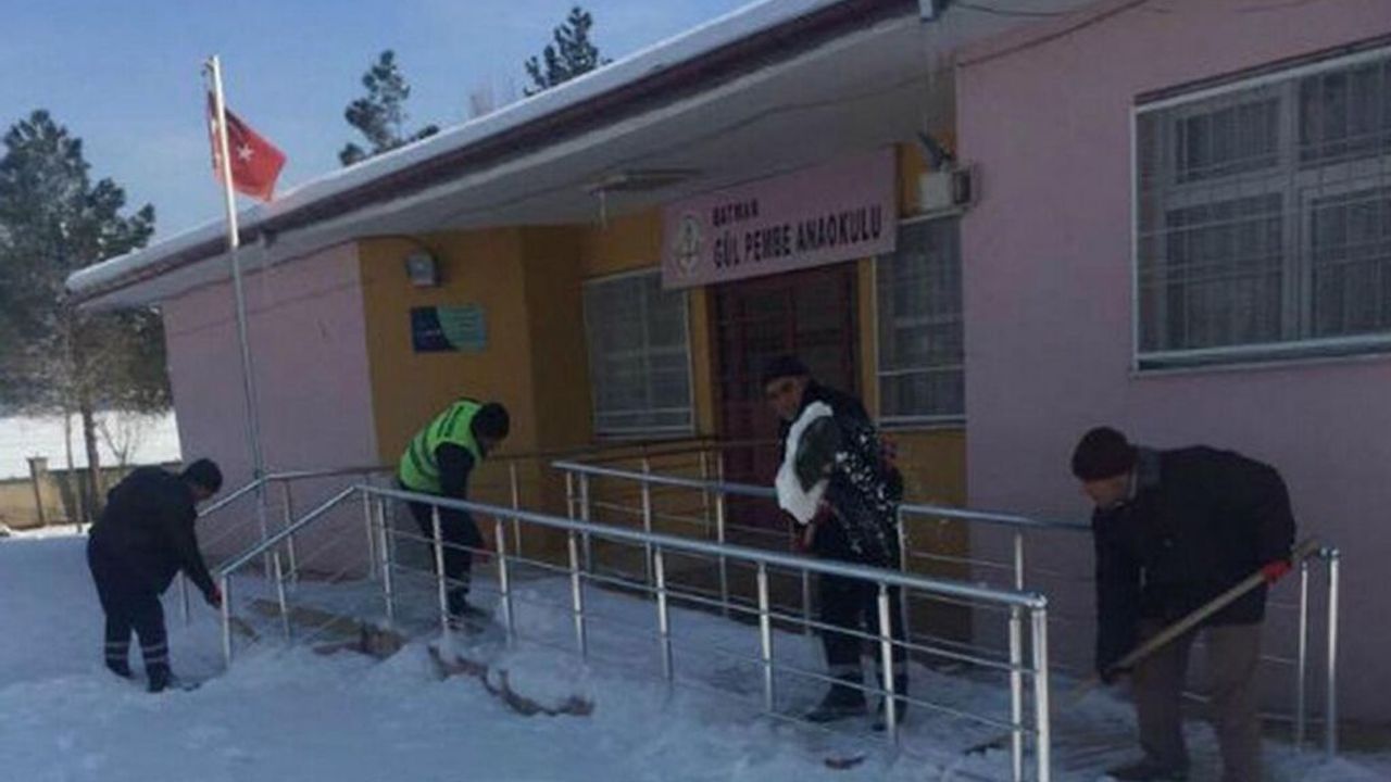 Batman Belediyesi Fen İşleri Müdürlüğü ile Temizlik İşleri Müdürlüğü'ne bağlı ekipler kentte bulunan okullarda kar temizleme ve tuzlama çalışmalarını sürdürüyor.