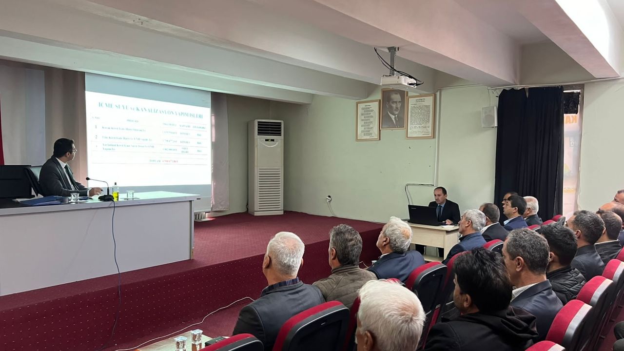Konuyla alakalı Köylere Hizmet Götürme Birliği tarafından yapılan açıklamada, “ilçemiz Köylere Hizmet Götürme Birliği’nin 2023 yılı Kasım ayı olağan meclis toplantısı İlçe Halk Kütüphanesi Toplantı Salonunda yapıldı. Toplantıya İlçe Kaymakamımız Sayın Muhammed Öztaş, Birlik Müdürü Mehmet Salih Orak, İl Genel Meclis Üyesi ve Köy Muhtarları katıldı. Toplantıda, 2023 yılı faaliyet raporu, 2024, 2025 ve 2026 yılı tahmini bütçesi ile 2024 yılı yatırım plan ve çalışma programı görüşülerek onaylandı.” ifadeleri kullanıldı.MUHARREM KAYIK