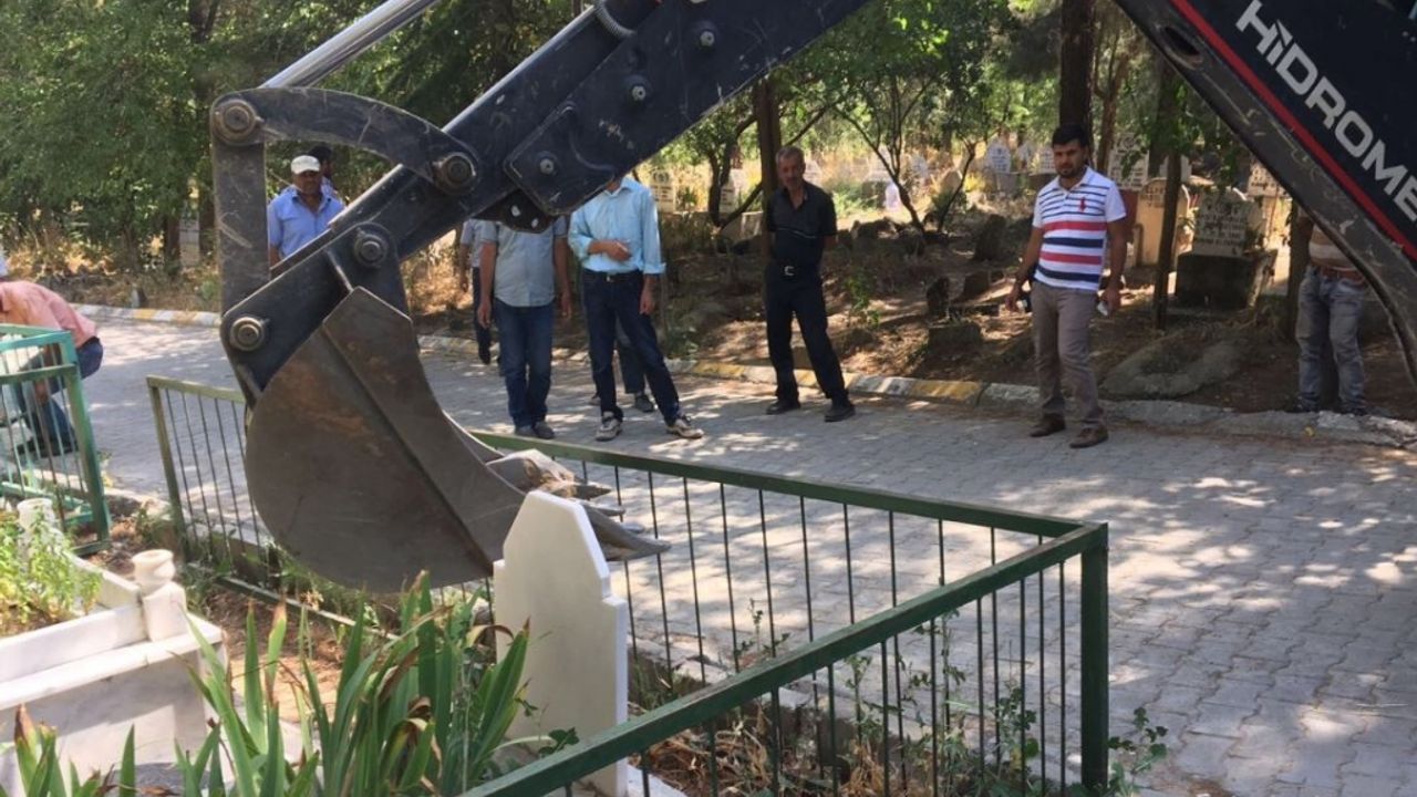 Belediye ekipleri mezarlıklara giderek kepçelerle demir parmaklıkları söktü. Korkulukların kaldırılması esnasında Behrem Yoğun Mah Muhtarı Enver SARIKAYA, Cumhuriyet Mah Muhtarı Faysal Balcı, Bağdu Mah Muhtarı Halil Cıdık, KobinMah Muhtarı Tevfik Kubilay, Mehmet Yatkın Mah Muhtarı Reşat AKTİ ve Merkez Camii İmamı İlyas Bağatır hazır bulundu.