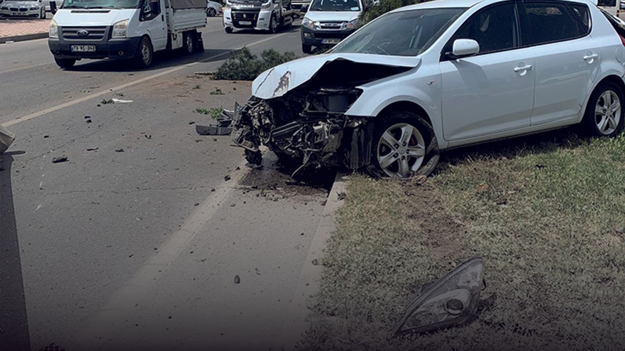 sonucu aydınlatma direğine, ardından orta refüjdeki ağaca çarparak ancak