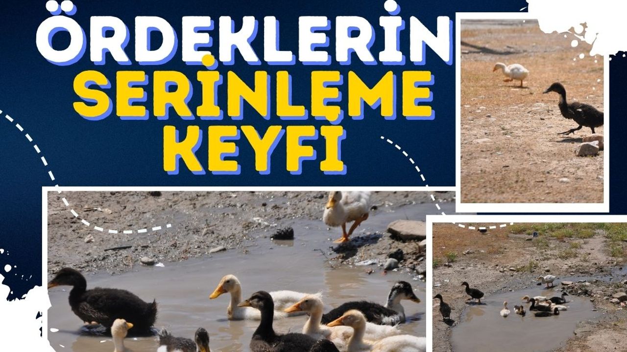 Balpınar’da, sıcaklıkların yükselmesiyle birlikte ördekler de serinleme ihtiyacı hissetmeye başladı. Yol kenarlarında bulunan su birikintileri, bu sevimli hayvanlar için adeta bir serinleme noktası haline geldi. Sıcaklardan bunalan ördekler, su birikintilerine girerek vücut ısılarını düşürmeye çalıştı.