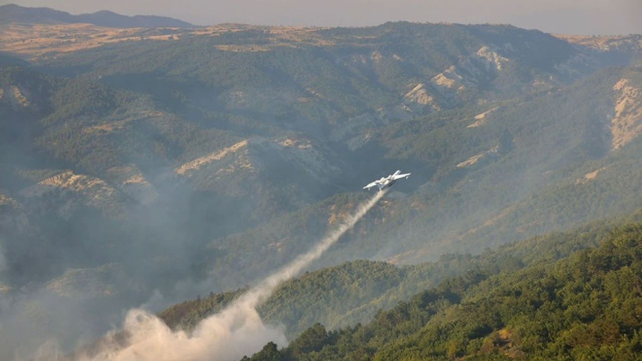 Yangına, 35 personel, 6 arazöz, 5 su ikmal aracı, 5 ilk müdahale aracı ve 3 helikopterle müdahale edildi.