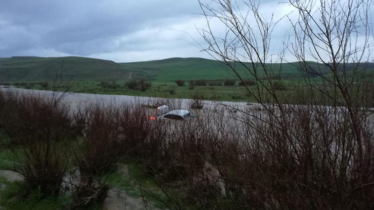 yükselen Garzan Çayı’nda otomobil uzun bir mesafede suda sürüklendi.