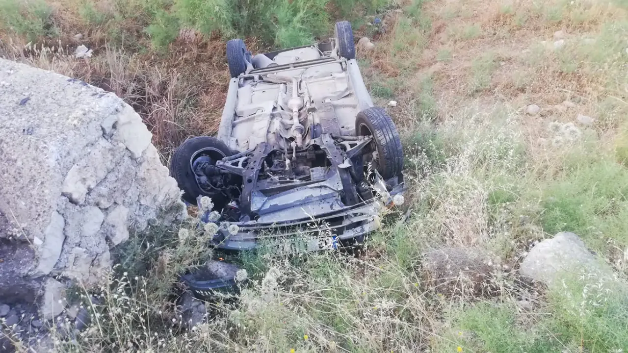 Aracın ters yattığı kazada 3 kişi yaralandı.