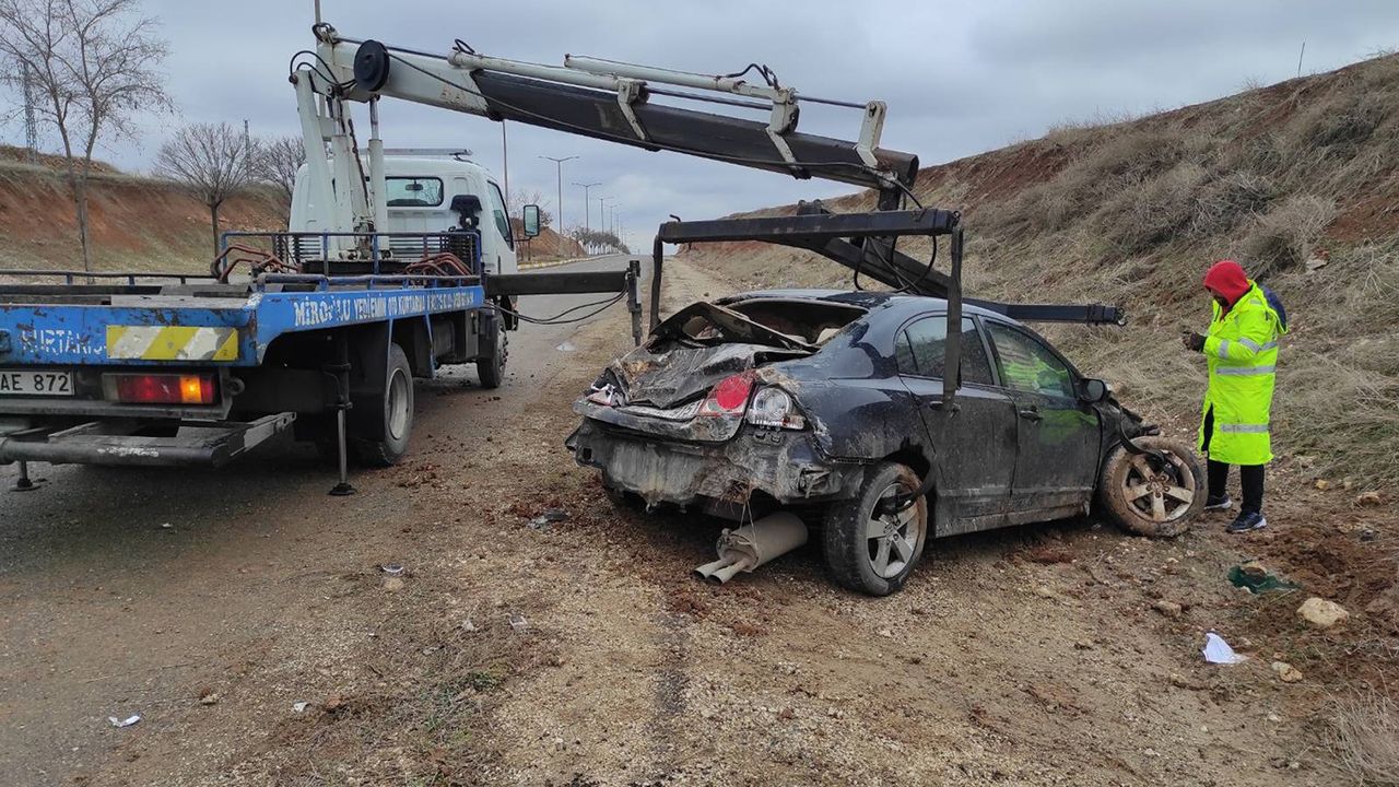 sürücüsünün direksiyon hâkimiyetini kaybetmesi sonucu takla attı.