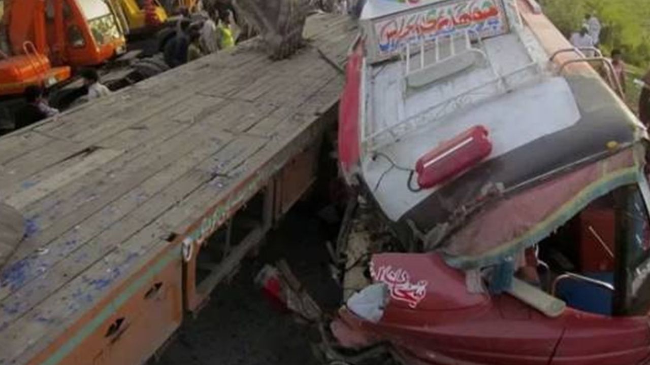Kurtarma ekipleri 1122'ye göre, kaza, doğu Pencap eyaletinden güneydeki liman kenti Karaçi'ye giden otobüsün, ağır beton kirişler taşıyan bir treylere çarpması sonucu Khairpur bölgesinde meydana geldi.