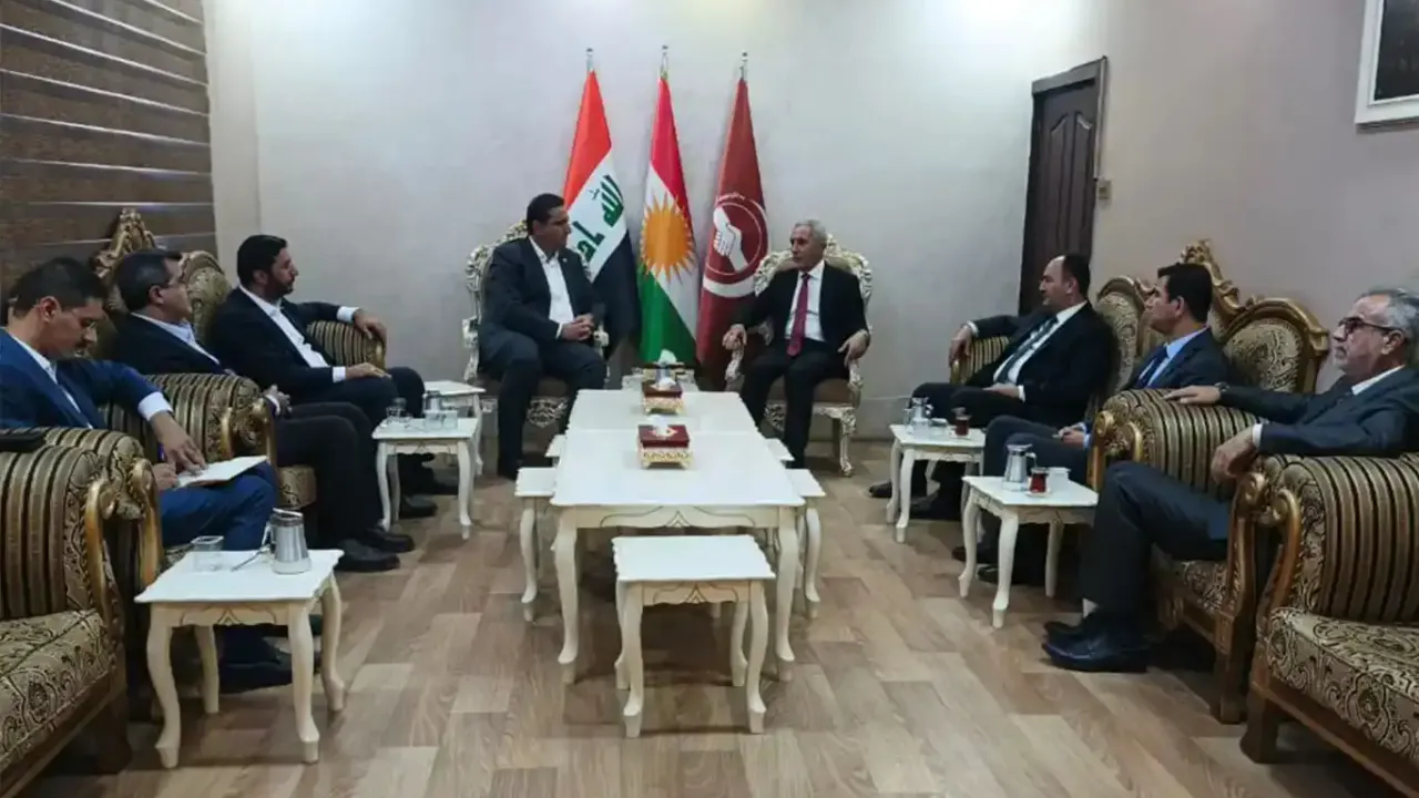 Di lijneya HUDA PARê de Serokê Têkilîyên Derve Huseyîn Îmîr, Endamê Sazîya Îstîşare ya Navend Nasuh Sevînîk û ji Temsîlvanîyên Hewlêrê Mucahîd Şîmşek. (ÎLKHA)