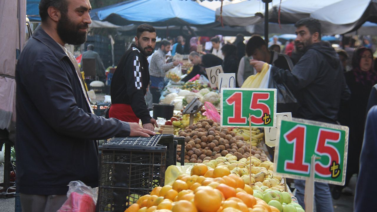Pazarda meyve satan esnaf Nurettin Esmer, mandalina, nar ve elma gibi temel ürünleri tezgâha çıkardıklarını belirterek fiyatların yükselmesini enflasyon, mazot zamları ve vergi artışına bağladı. Esmer, "Şu an vergiler yüzde 2’den 18’e çıktı" dedi.