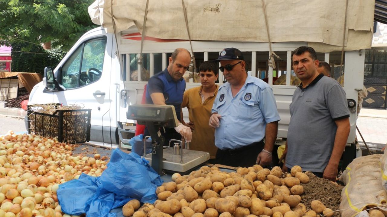 belediye zabıtasının terazisinde ürünler kıyaslanırken, arada fark olup