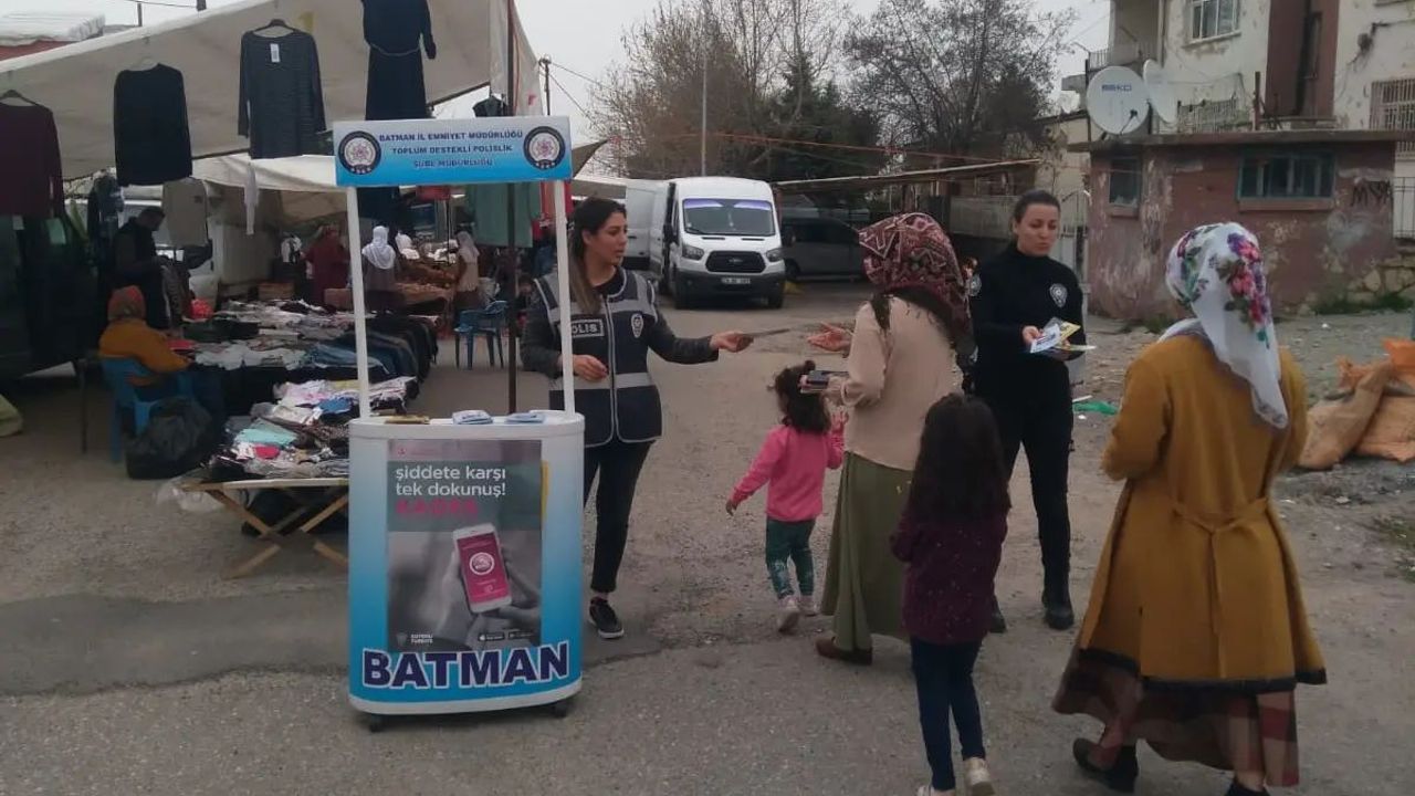 Beşiri İlçe Emniyet Amirliği ilçede kurulan pazar yerinde KADES (Kadın Destek) Uygulaması ve UYUMA (Uyuşturucuyla Mücadele Aplikasyonu) Projeleri hakkında bilgilendirme faaliyeti ve broşür dağıtımı gerçekleştirdi.