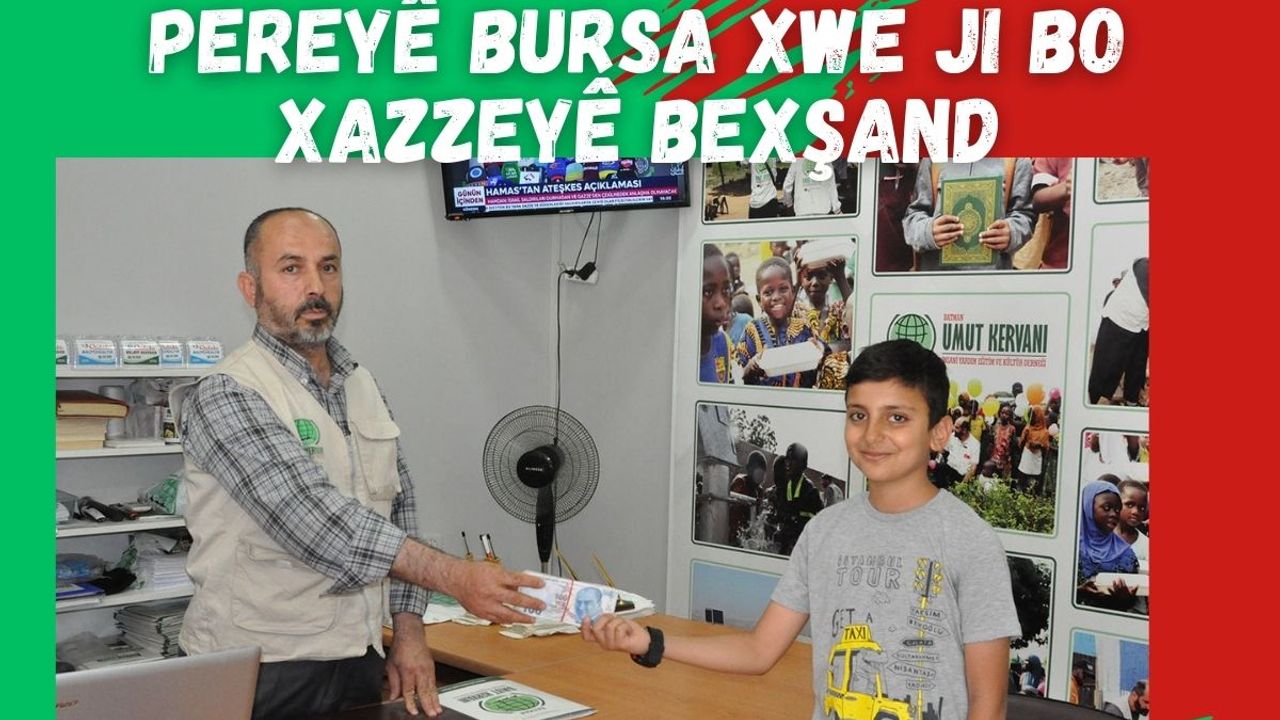 Li Batmanê zarokekî 11 salîpereyê bursa 4 mehan jibo bigihînin Xezzeyê teslîmî Umut Kerwanî kir.