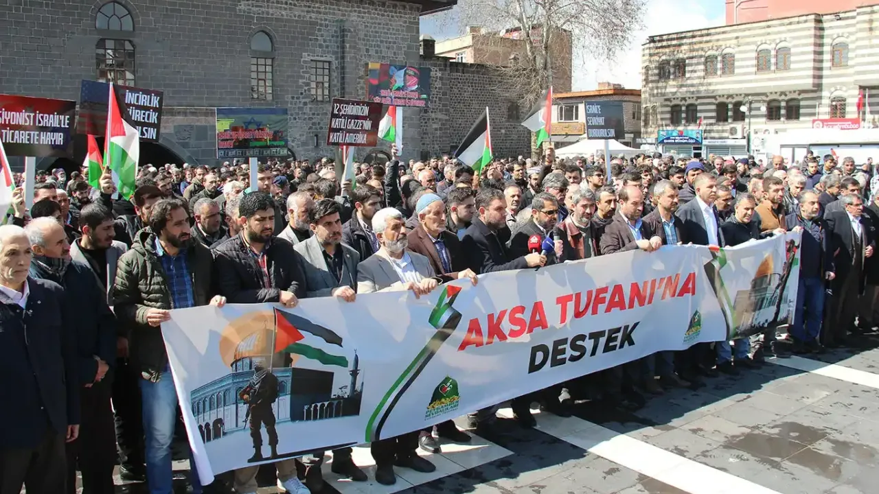Diyarbakır merkez Sur ilçesi Ulu Camii önünde Cuma namazı sonrası düzenlenen basın açıklamasını Peygamber Sevdalıları adına Dr. Sertaç Tekdal okudu.