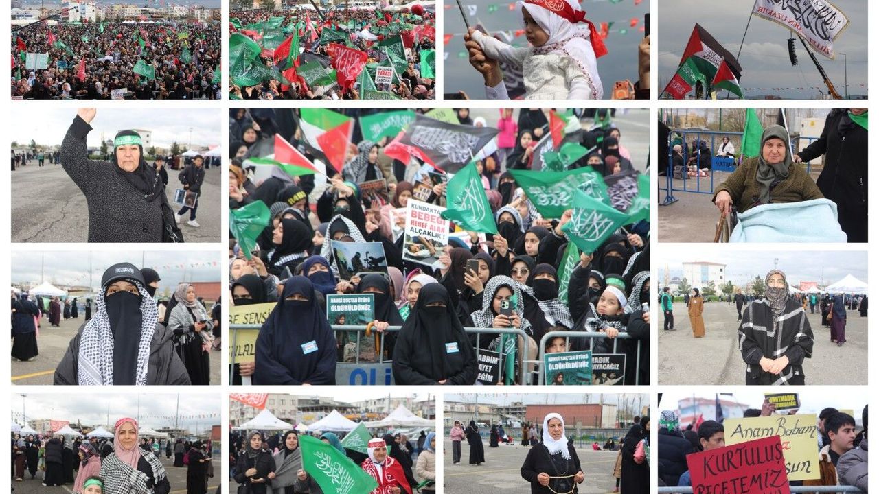 'Vahdet ve Kurtuluş Önderimiz Hazreti Muhammed' temasıyla gerçekleştirilen büyük buluşmaya kadınların yoğun katılımı her zamanki gibi dikkat çekti.