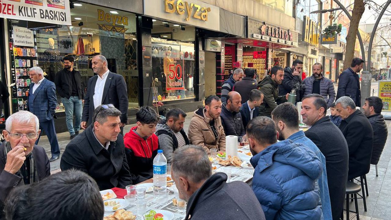 HÜDA PAR Batman Belediye Başkan Adayı Serkan Ramanlı, seçim çalışmaları kapsamında ziyaret ettiği halk kesimleri tarafından büyük bir ilgiyle karşılanıyor. Ramanlı, seçim çalışmaları kapsamında bu defa Gülistan Caddesinde bulunan esnafı ziyaret etti. Sabahın erken saatlerinde esnaf ziyaretine başlayan Ramanlı’ya esnaf ilgi gösterdi. Esnafın kahvaltı teklifini geri çevirmeyen Ramanlı, onlarla birlikte kahvaltı yaptı.