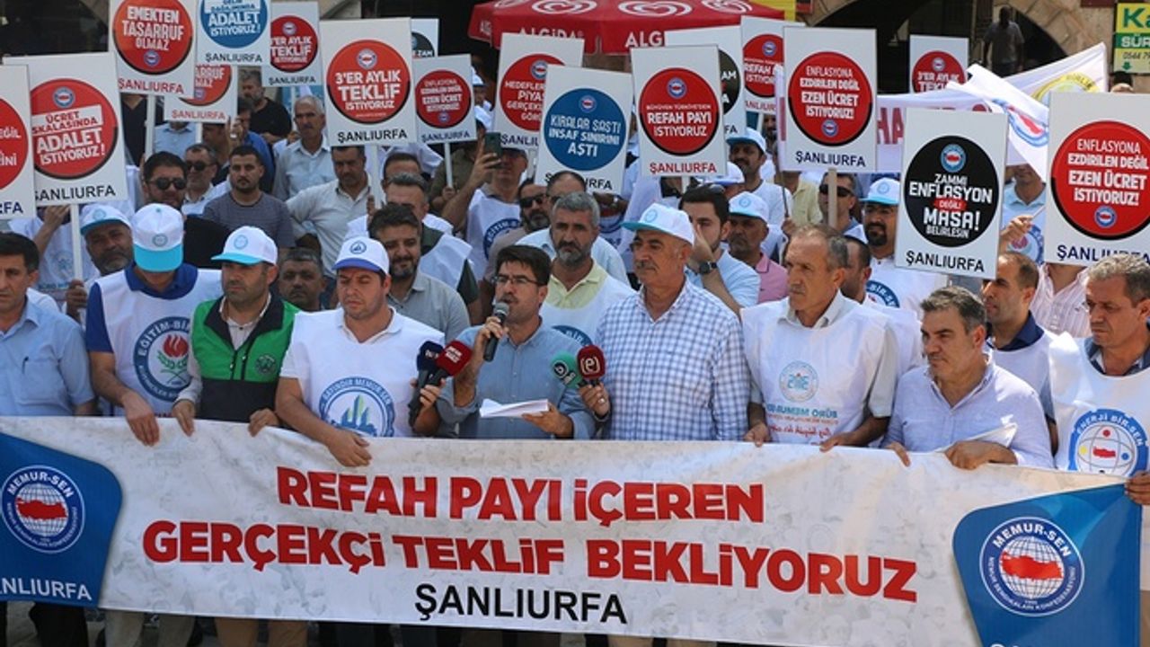 Memur-Sen ve 11 yetkili sendika, kamu İşvereninin, masanın emek tarafının sesini duymadığını düşündüklerini ifade ederek 81 il genelinde olduğu gibi Şanlıurfa'da da basın açıklaması yaptı.