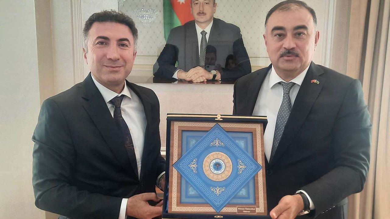 Reşad Memmedov, çalışmalarından dolayı Rektör Demir'i tebrik ederek başarılar