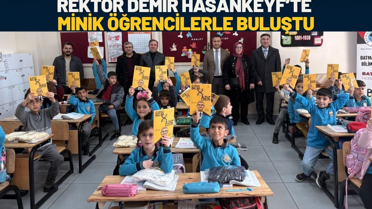 Batman Üniversitesi, kent merkezi dışındaki okullarla bağlarını güçlendirecek adımlar atmaya devam ediyor. Üniversitenin Bilim İletişimi Ofisi tarafından organize edilen buluşmalar kapsamında, Rektör Prof. Dr. İdris Demir’in son durağı tarihi ilçe Hasankeyf oldu. Hasankeyf İlkokulu'nu ziyaret ederek sınıfları gezen Demir, öğrencilerle bilim, eğitim ve okul hayatı üzerine kısa söyleşiler gerçekleştirdi. Sürpriz ziyaretten mutlu olan minik öğrenciler ise Rektör Demir’e Türk Bayrağı hediye etti.