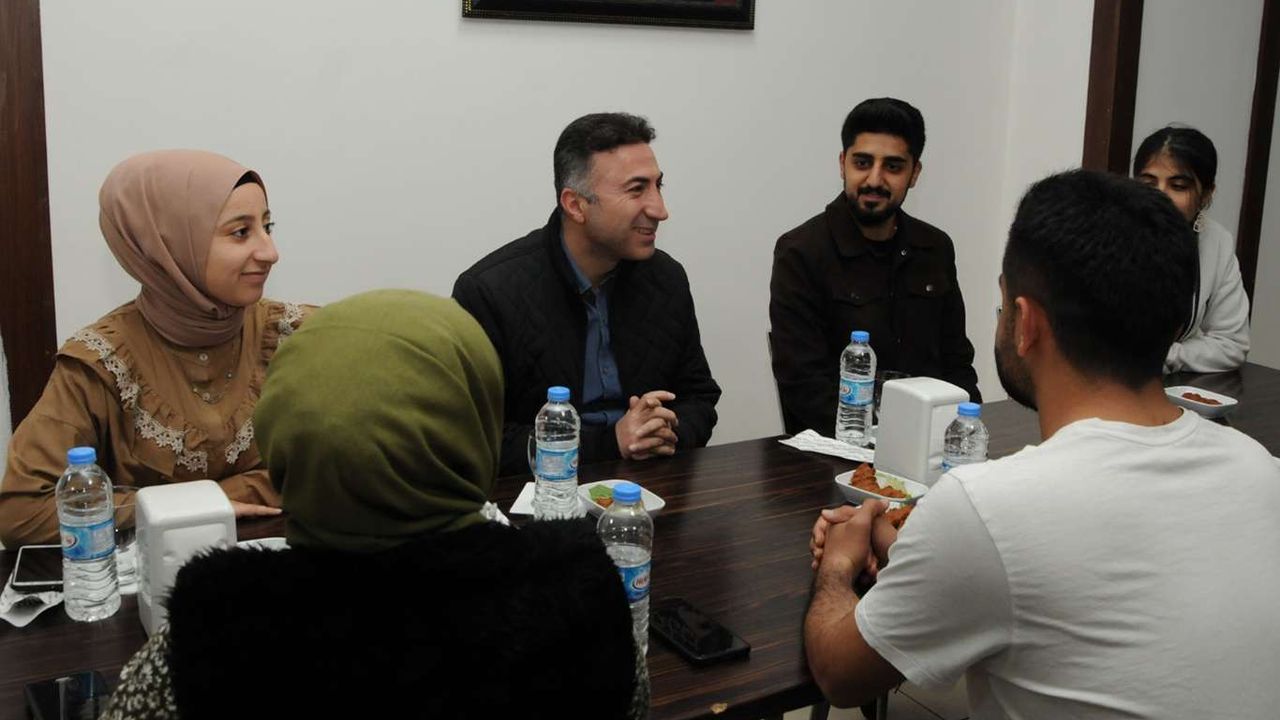 Öğrencilerle iftar yemeğinin ardından çay içip sohbet eden