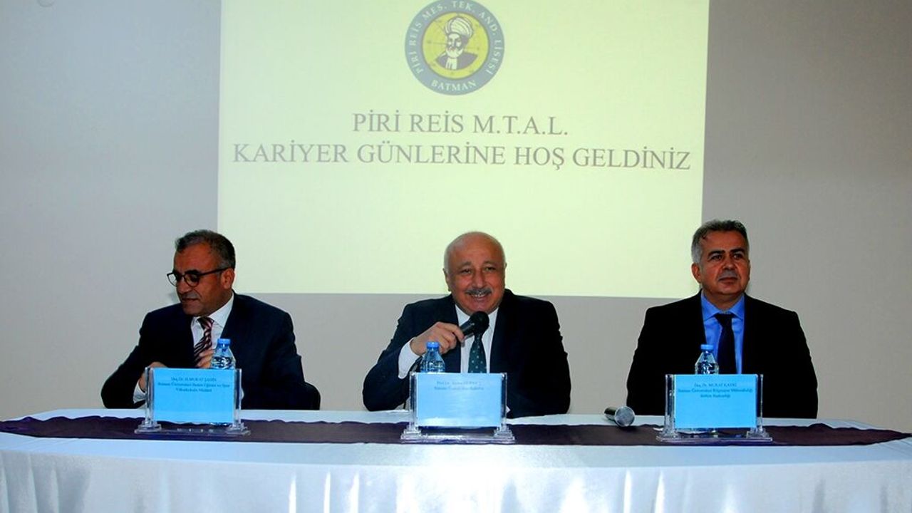 Batman Piri Reis Mesleki Teknik Anadolu Lisesi tarafından organize edilen 'Kariyer Günleri' paneline Batman Üniversitesi Rektörü Prof. Dr. Aydın DURMUŞ, Milli Eğitim Müdürü Mahmut KURTARAN, Kozluk Meslek Yüksekokulu Müdür Vekili Doç. Dr. Murat KAYRİ ve Batman Belediyesi Başkan Yardımcısı Doç. Dr. Hacı Murat ŞAHİN konuşmacı olarak katıldı.