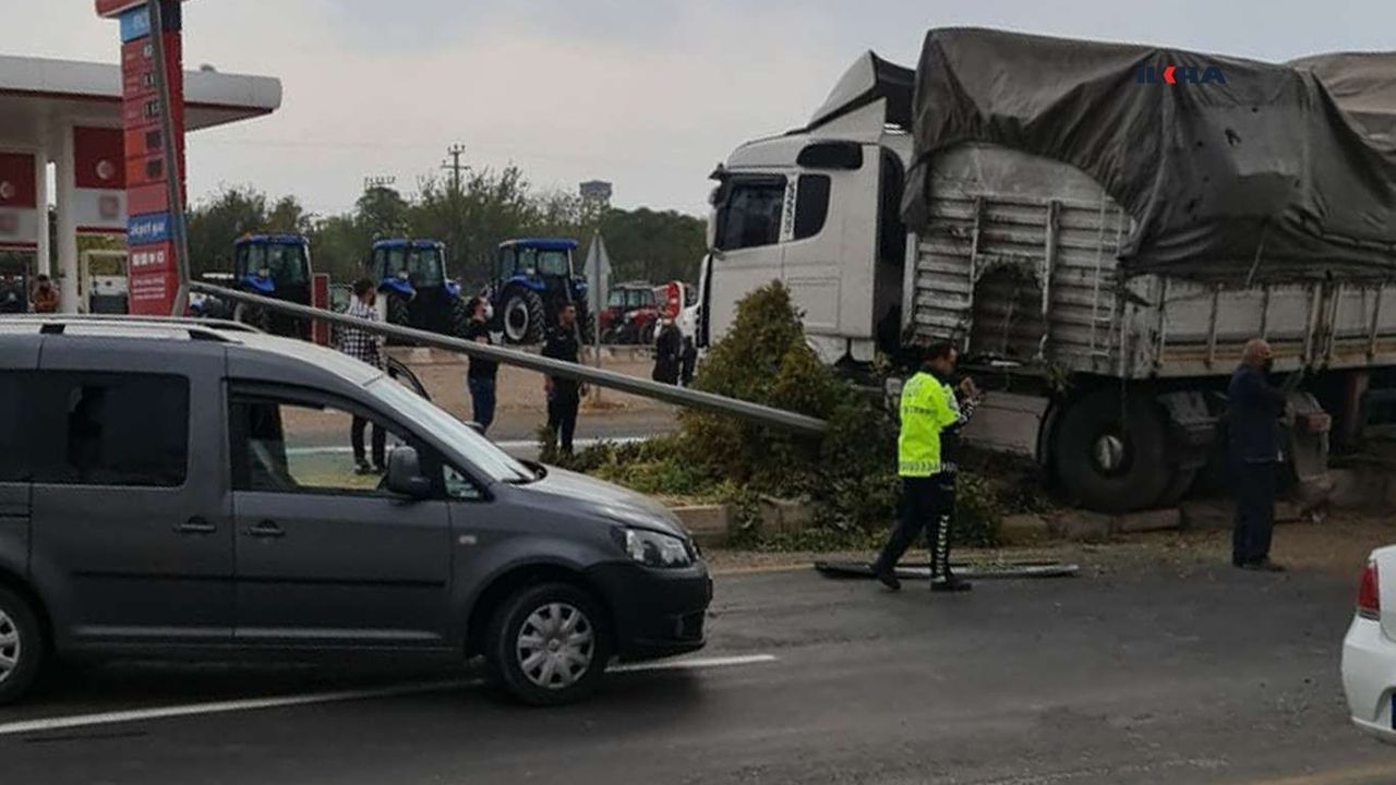 hakimiyetini kaybeden tır aracı, orta refüjdeki aydınlatma direği ve ağaca