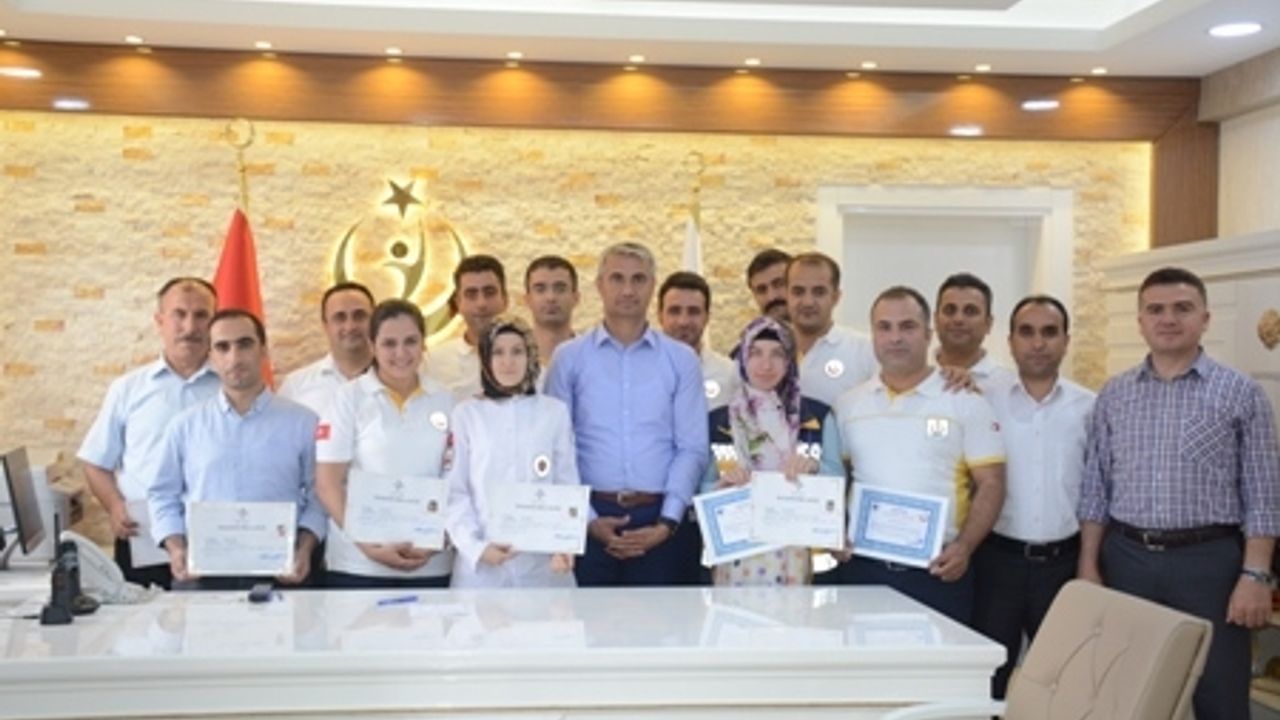İl Sağlık Müdürlüğü bünyesinde görev yapan acil ve afetlerde sağlık hizmetleri şube personeli, başhekimlik personeli ve il sağlık müdürlüğü personellerine teşekkür belgesi ve başarı belgesi takdim edildi. Belgeleri takdim eden Sağlık Müdürü Dr.İhsan Bodakçi; 'Müdürlüğümüz hizmetlerinde göstermiş olduğunuz üstün çalışma azmi, örnek ve başarılı davranışlarınızdan dolayı şahsım ve kurumum adına teşekkürlerimi sunar başarılarınızın yaşam boyu devamını dilerim.' Dedi.