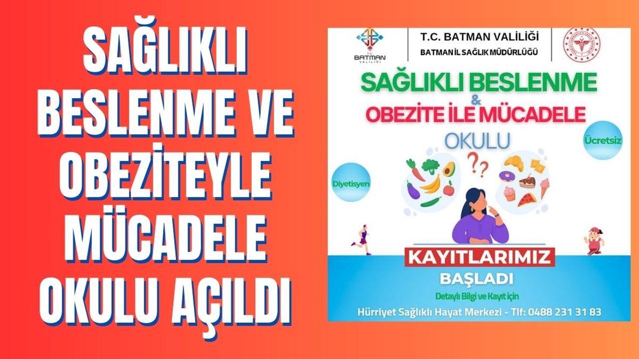 Batman sağlık il müdürlüğünden yapılan açıklamada “Sağlıklı beslenme ve fiziksel aktivite alışkanlığı kazanmak için Sağlıklı Beslenme ve Obezite ile Mücadele Okuluna katılımınızı bekliyoruz. Katılım için Hürriyet Sağlıklı Hayat Merkezine bizzat başvuru ya da telefon ile müracaat edebilirsiniz.” Denildi.