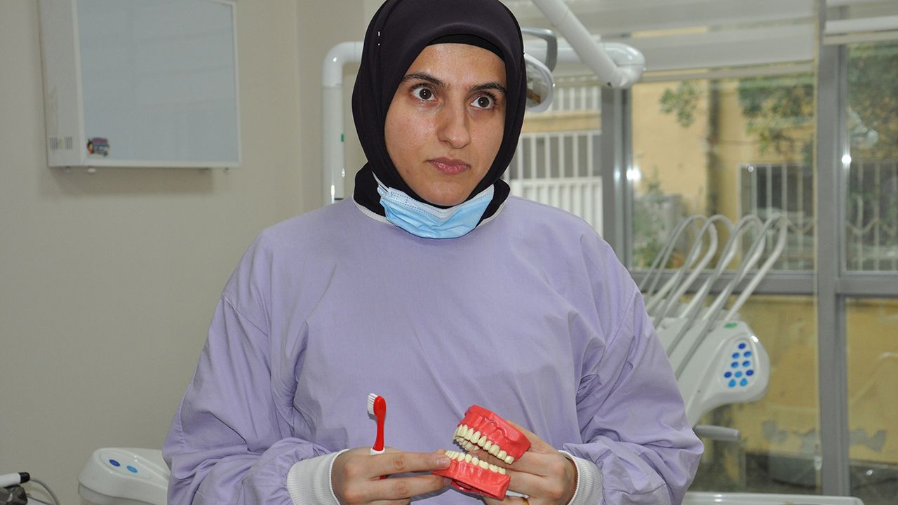dişlerin fırçalanması gerektiğini kaydeden Gülmez, "Yemek yedikçe ağızda