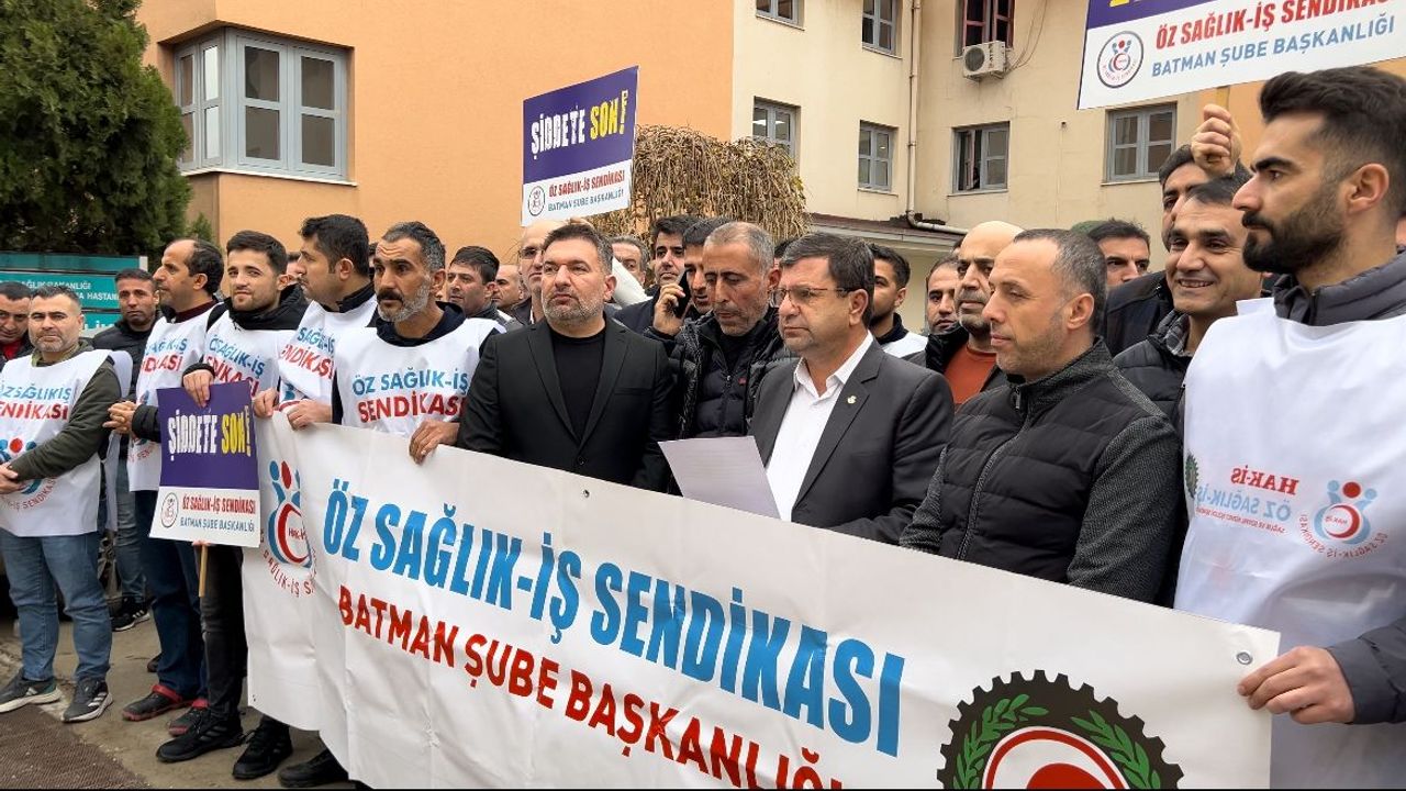 Batman Eğitim ve Araştırma Hastanesi'nde bir araya gelen Öz Sağlık-İş Sendikası üyeleri, geçtiğimiz günlerde yaşanan şiddet eylemini basın açıklaması ile kınadı.