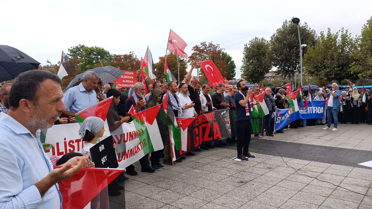 Sakarya Sivil Toplum Kuruluşları Platformu tarafından Adapazarı Gar Meydanı'nda düzenlenen programda, Filistin lehine sloganlar atıldı, Sumud konvoyuna destek mesajları verildi.