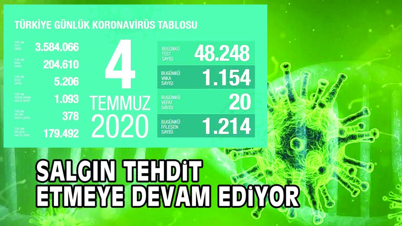 testler sonucu bin 154 yeni vakanın tespit edildiği, toplam hasta sayısının ise