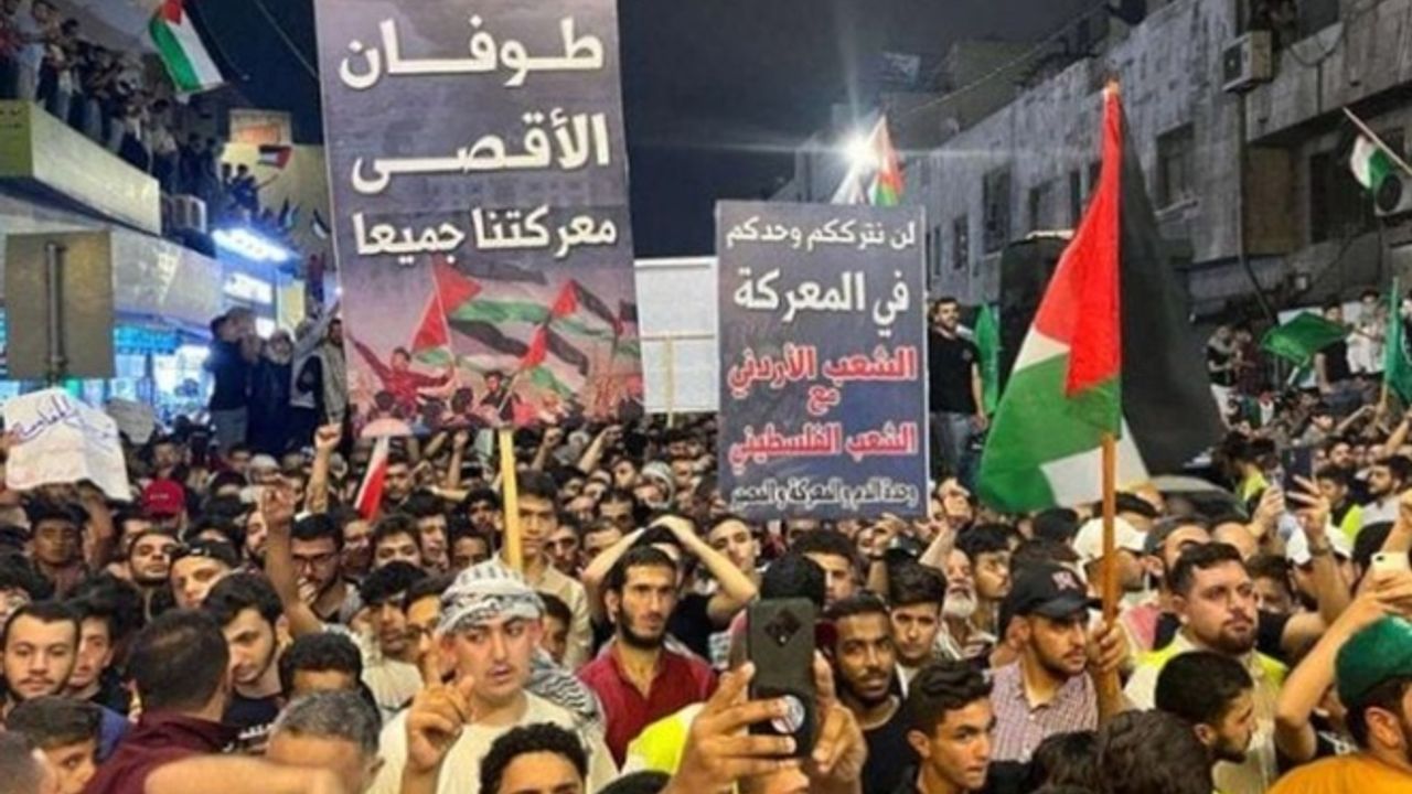 Siyonist işgal rejiminin Amman Büyükelçisinin sınır dışı edilmesi ve büyükelçiliğin kapatılmasını isteyen göstericiler, "Sizleri savaşta yalnız bırakmayacağız", Ürdün halkı Filistin halkının yanındadır", "Mescid-i Aksa Tufanı hepimizin savaşıdır" ve "Halk Filistin'i kurtarmak istiyor" sloganları attı.