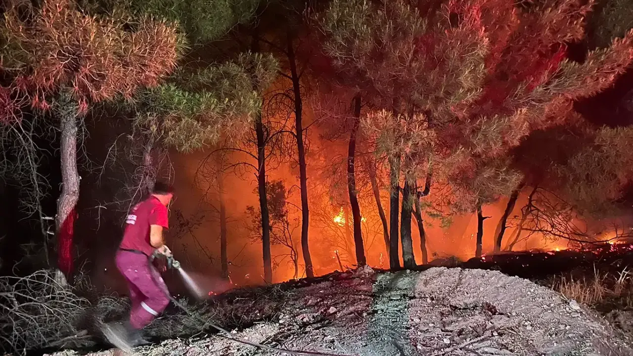Orman yangınına ekiplerin havadan ve karadan müdahalesi devam ediyor. (İLKHA)