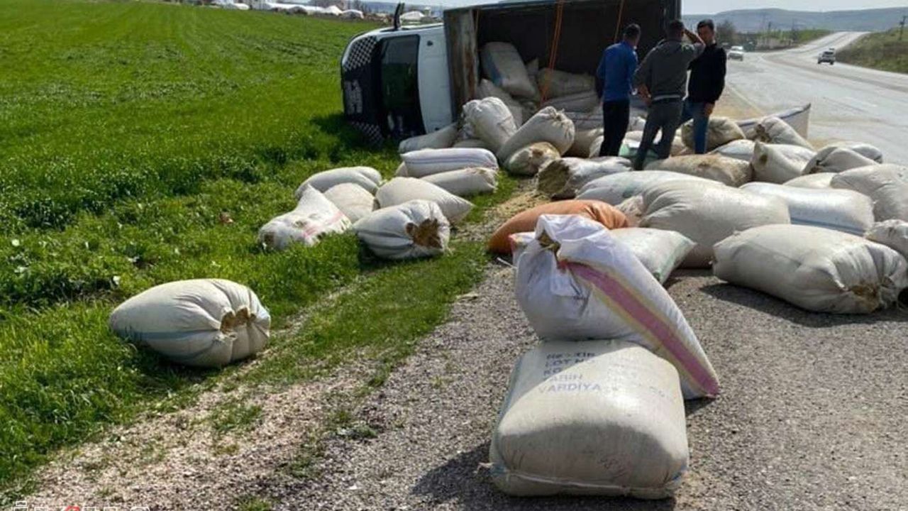 savrulurken, ölen ya da yaralanan olmadı. Saman torbaları, başka bir kamyona
