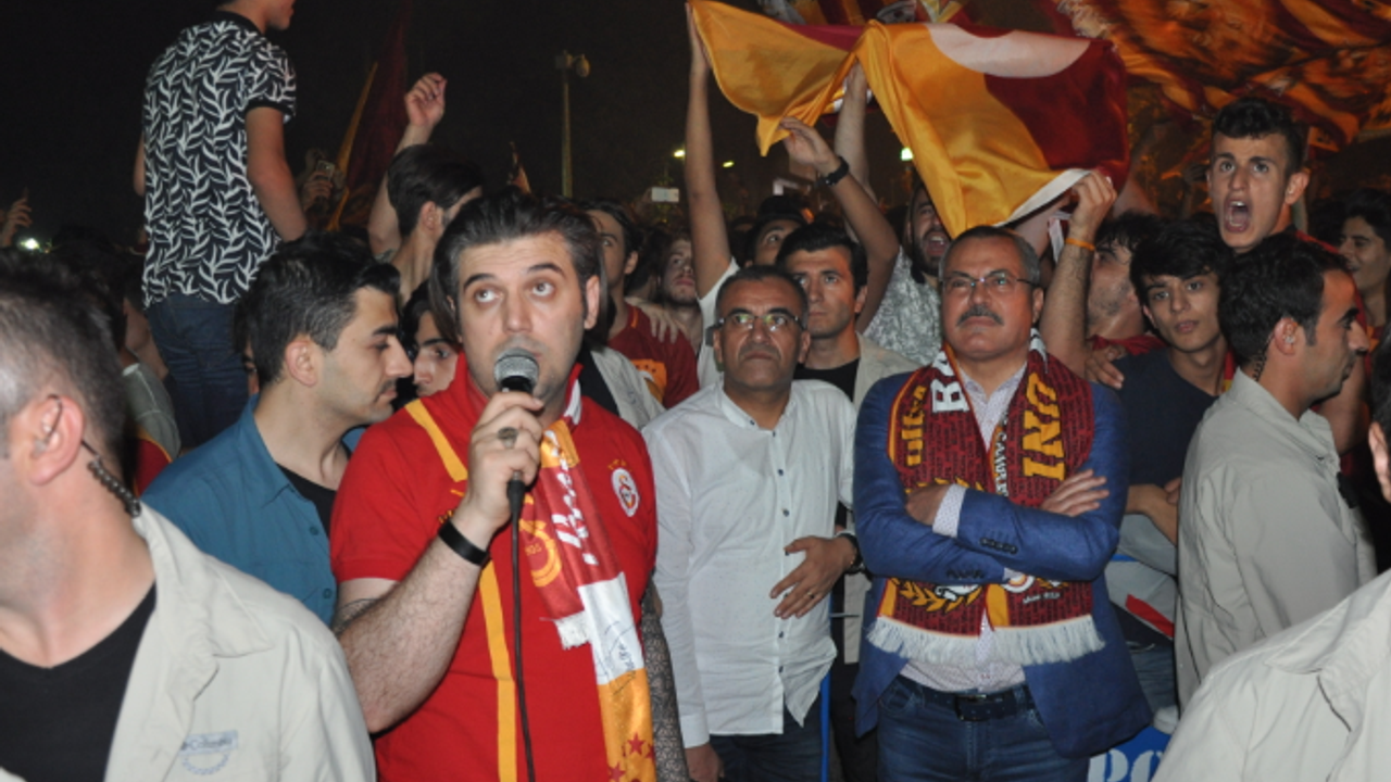 Süper ligde son hafta mücadelesinde Göstepespor'a konuk olan Galatasaray maçı 1-0 kazanarak 21. şampiyonluğunu ilan ederken maçı izlemek için alana gelen binlerce sarı kırmızılı taraftar şampiyonluklarını tezahüratlar ve meşaleler eşliğinde kutladı.