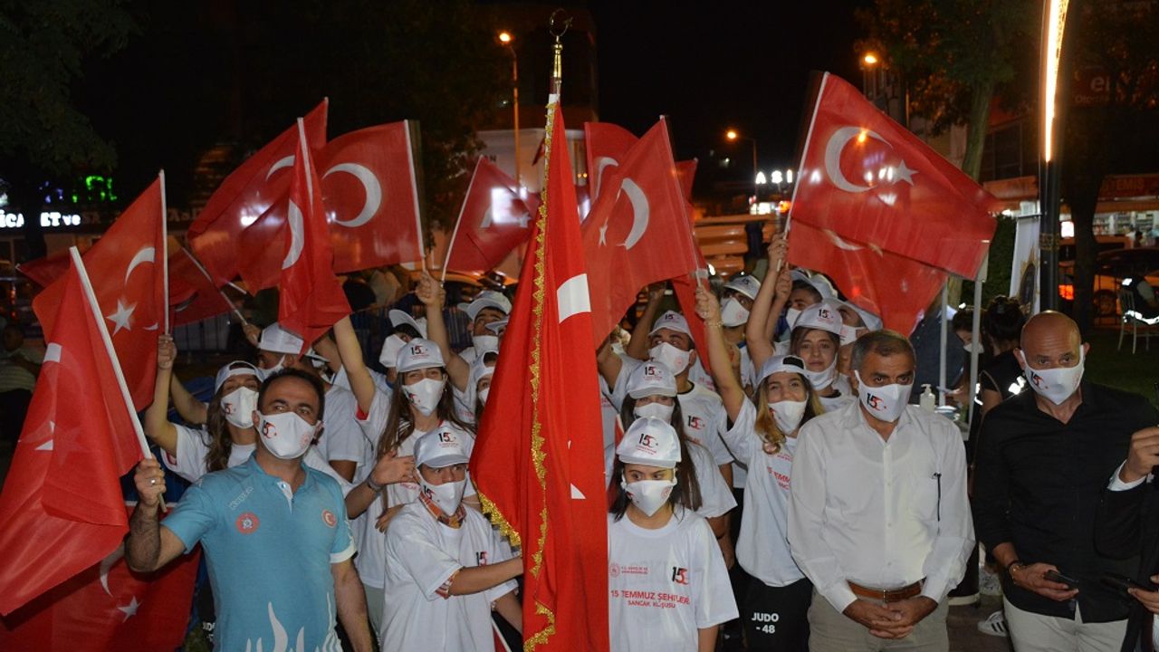 metresinde ise özel iki sporcu, sancağı teslim alarak Atatürk Parkında bulunan