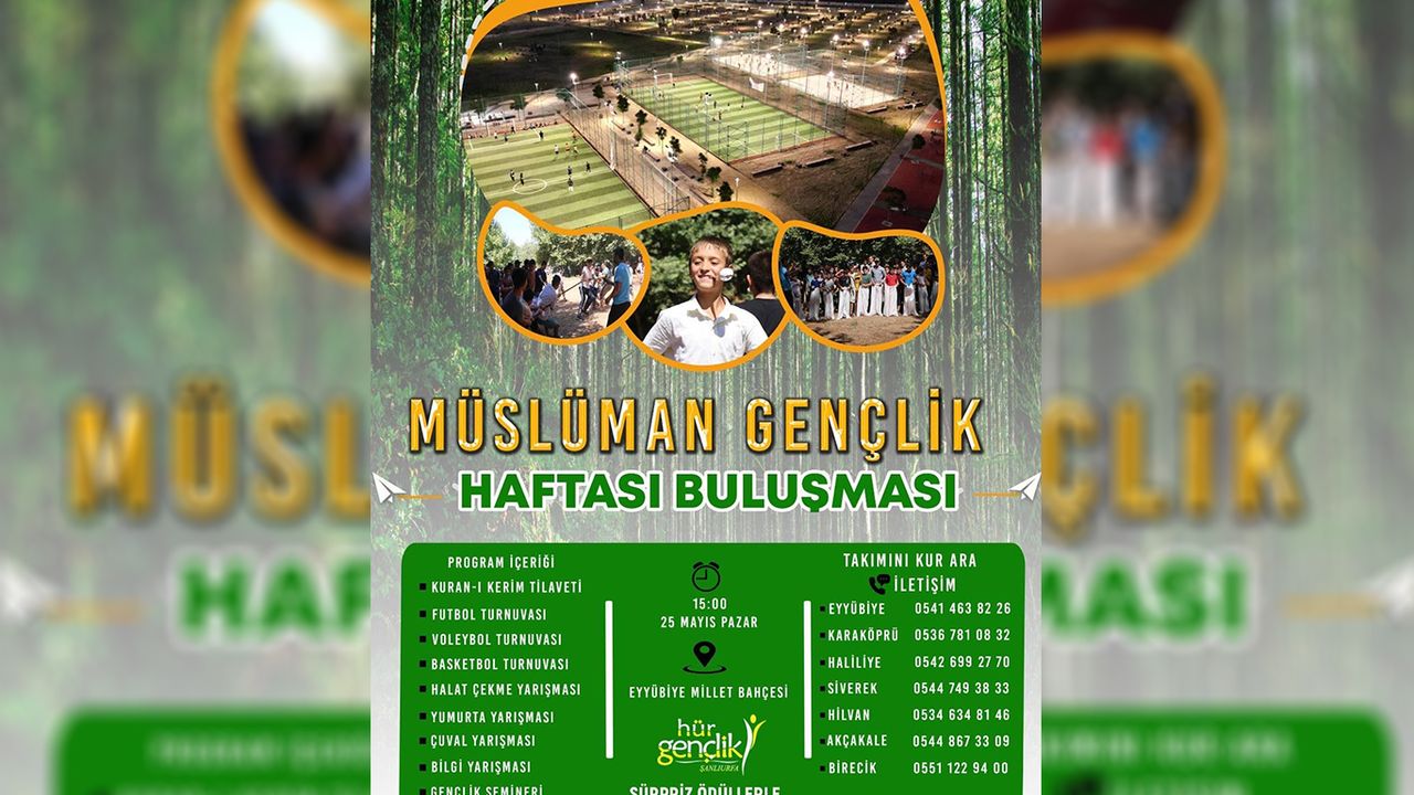 Gençlerin hem fiziksel hem de manevi gelişimlerine katkı sunmayı hedefleyen “Müslüman Gençlik Haftası Buluşması”, 25 Mayıs Pazar günü saat 15.00’te Eyyübiye Millet Bahçesi’nde yapılacak. Hür Gençlik Şanlıurfa organizasyonuyla düzenlenecek buluşma, zengin etkinlik programıyla dikkat çekiyor.