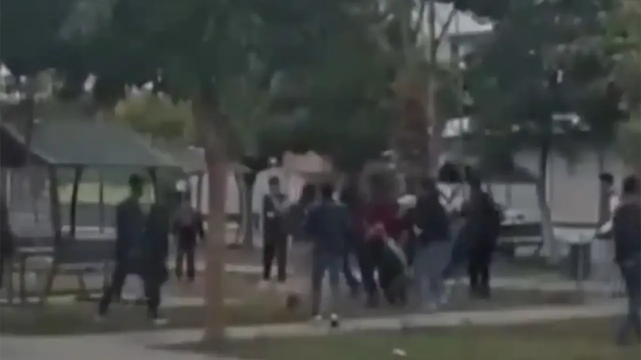 Okulda tartışan iki öğrenci grubu, parkta karşı karşıya geldi.