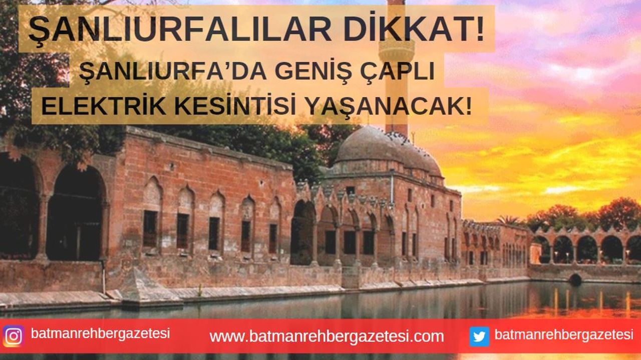 ŞANLIURFA ŞEHİR MERKEZİ VE BAĞLI KIRSAL MAHALLELERDE ELEKTRİK KESİNTİSİNİN YAPILACAĞI YER VE SAATLER...
