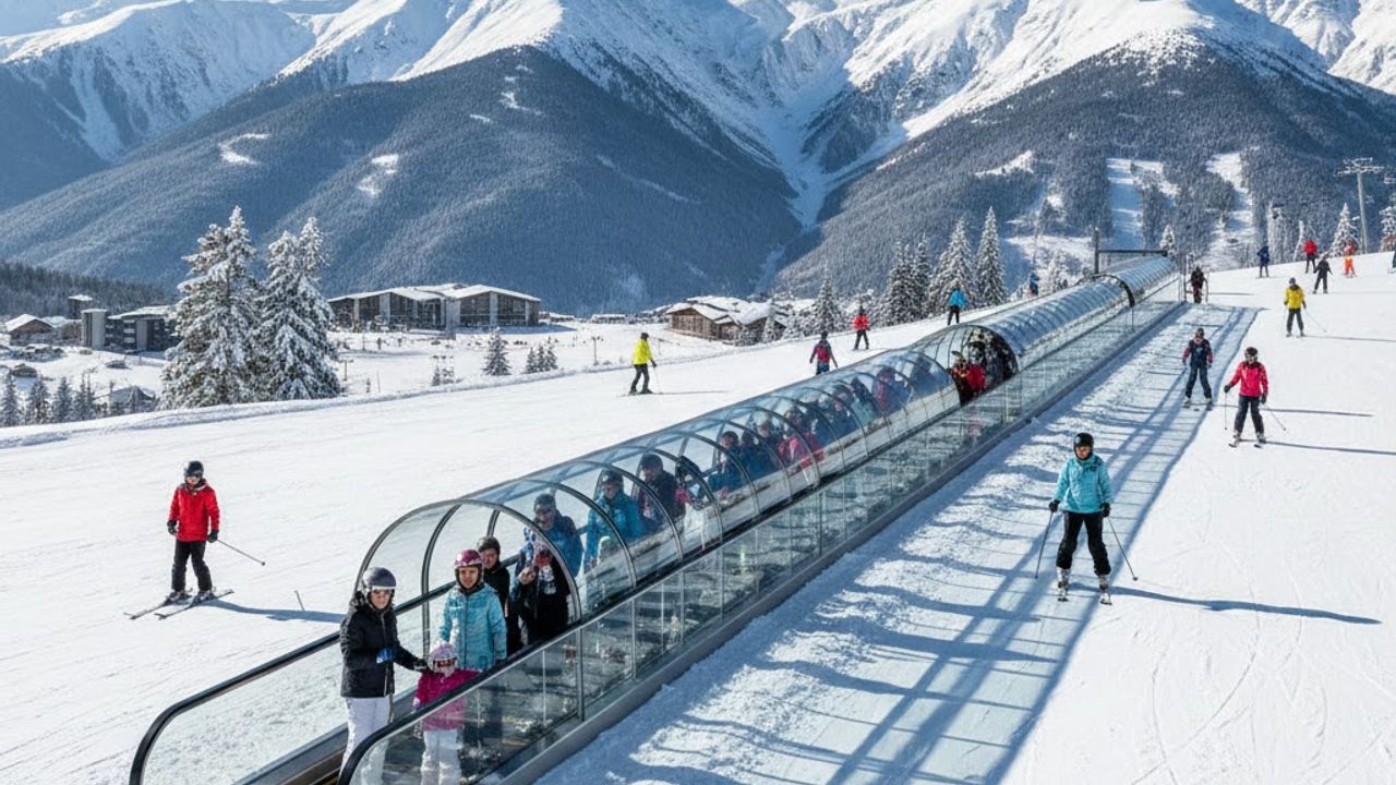 Özellikle yeni başlayan kayakçılar ve çocuklar için büyük kolaylık sağlayan yürüyen bant sistemi sayesinde: