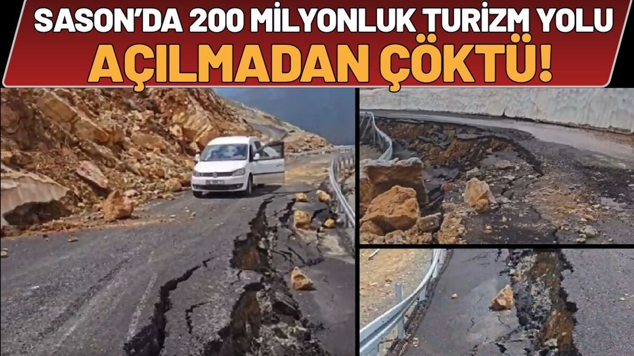 Sason’da oturan vatandaşlar tarafından paylaşılan ve geniş yankı uyandıran görüntülerde, yolun büyük bir bölümünde dev yarıkların oluştuğu, asfaltın parçalandığı ve istinat bariyerlerinin yamacın aşağısına savrulduğu görülüyor.