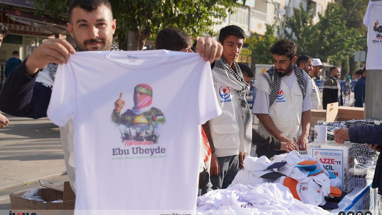 İzzetin El Kassam Tugayları Sözcüsü Ebu Ubeyde resimlerinin basılı olduğu tişört, bardak, saat ve diğer ürünlerden elde edilen bütün gelirleri Gazze'ye bağışlayacaklarını belirten Yetimler Vakfı Batman Temsilcisi Musab İmir, şunları söyledi: "Yetimler Vakfı Batman Temsilciliği olarak Gazzeli kardeşlerimizin yanında durmaya devam ediyoruz. HÜDA PAR'ın Batman'da 'Aksa Tufanına Destek' mitinginin düzenlediği ortamdayız. Yetimler Vakfı olarak standımızı kurduk. İzzetin El Kassam Tugayları sözcüsü Ebu Ubeyde resimlerinin basılı olduğu tişört, bardak, saat ve diğer amblemli ürünler ile Gazzeli kardeşlerimize yardım amaçlı satıyoruz. Sattığımız bütün ürünlerden elde ettiğimiz geliri Gazzeli kardeşlerimize bağışlayacağız. Katkı sunan hayırseverlerden Allah razı olsun."