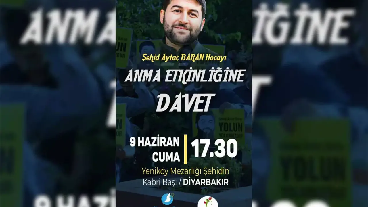 Diyarbakır'ın merkez Yenişehir ilçesi şehitlik semtinde PKK tarafından haince katledilen Yeni İhya-Der Başkanı Aytaç Baran'ın şehadetinin üzerinden 8 yıl geçti.