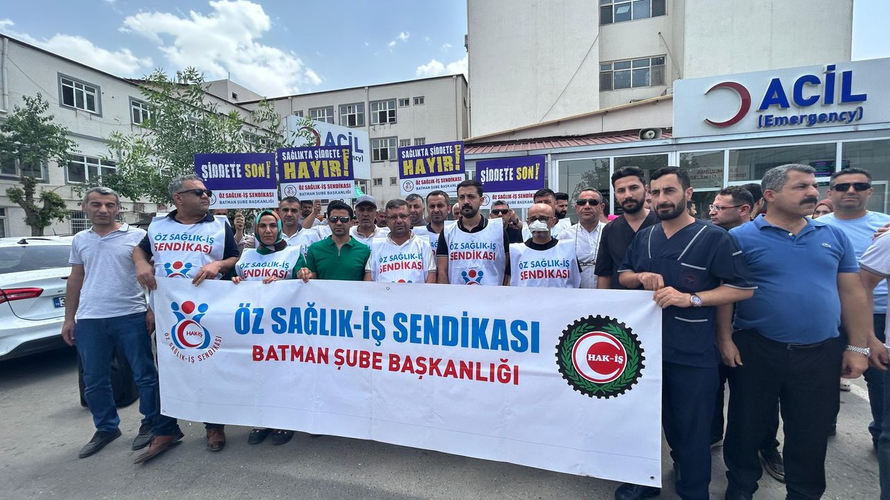 Öz Sağlık-İş Sendikası Batman Şube Başkanı Ahmet Altunç'un okuduğu basın açıklamasında, sağlık çalışanları ve hastane güvenlik görevlilerinin toplumun sağlığı ve güvenliği için büyük bir fedakârlıkla çalıştığı vurgulandı. Altunç, "Ancak ne yazık ki, bu kutsal görevi yerine getirirken şiddete maruz kalmaları, vicdan sahibi herkesi derinden yaralamaktadır" ifadelerini kullandı.
